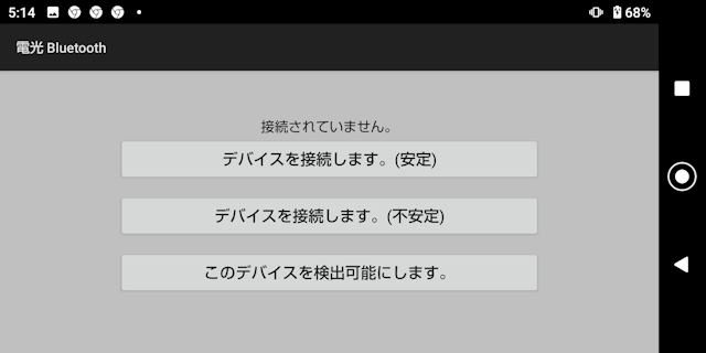 ■ブルートゥース ③ブルートゥースを選択は 一台を④の検出可能状態にして接続を待ちます。 もう一台はデバイスを接続します。ボタンをタップして下さい。 ![]()