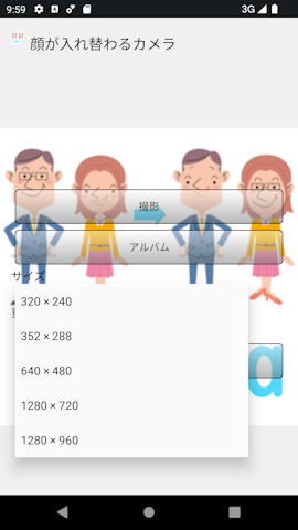 ■サイズ ④写真のサイズが選択できます。 サイズは端末に依存します。(大きいほど顔の認識率は上がります。)