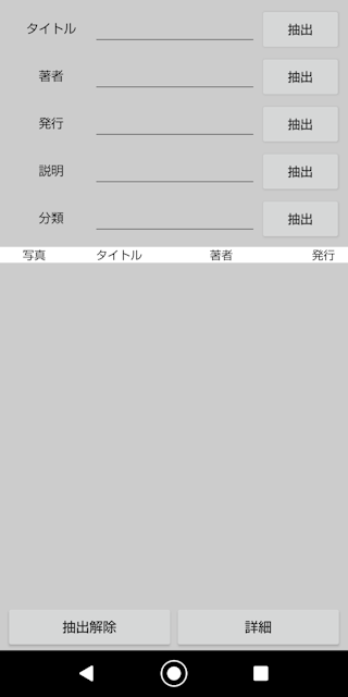 ■データベース ③データベースから探す事が出来ます。 タイトル タイトルから抽出できます。 著者 著者から抽出できます。 発行 発行から抽出できます。 説明 説明から抽出できます。 分類 分類から抽出できます。 抽出でワイルドカードの利用が可能です。 抽出したい文字列を%(半角)で囲んで下さい。 削除はリスト上を長押しして下さい。 ![]()