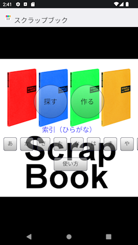 ■はじめに この「スクラップブック」は必要な情報が直ぐに取り出せ ピンチイン、ピンチアウトで簡単に見ることが出来ます。 ①アプリケーション最初の画面です。