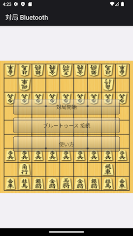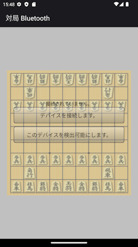 ■はじめに この「対局 Bluetooth」は端末同士をBluetoothで繋いで対局が出来ます。 片方を「このデバイスを検出可能にします。」をタップ もう一方を「デバイスを接続します。をタップ 接続できると「対局開始」ボタンが表示されるのでタップして下さい。 一画面上でも対局が出来ます。 ①アプリケーション最初の画面です。