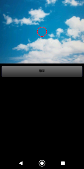 ■撮影 ②撮影ボタンをタップして撮影します。 もう一度タップすると停止します。 画面上をタップして出没位置を決めることが出来ます。 撮影時間は最長10秒 撮影が終わったら戻るボタンで戻って下さい。
