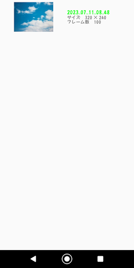 ■AVIファイルの生成 ⑥保存した映像をAVIファイルに変換出来ます。 リストから変換したい映像を選んでタップして下さい。 削除は長押しして下さい。