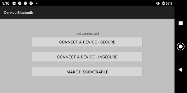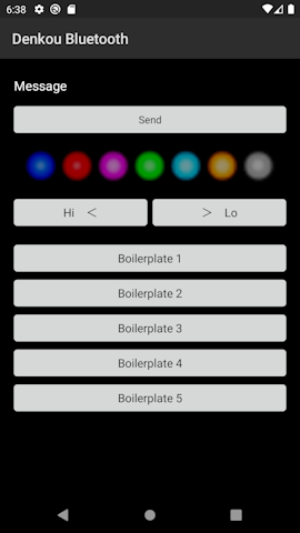 ■Introduction This "Denkou Bluetooth" can send messages by connecting terminals with Bluetooth. You can also change the color and speed. ①This is the first screen of the application. ![]()