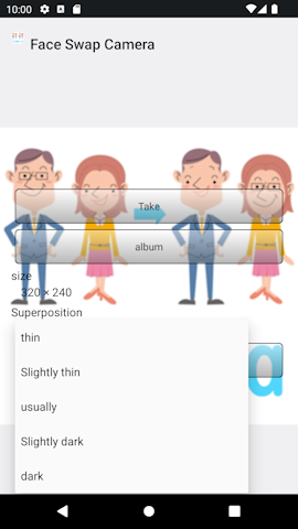 ■Introduction This Face Swap Camera is a camera app that recognizes faces and automatically replaces them. Face recognition can be shuffled by up to 10 people (depending on the model), and if you have a favorite image, save it. Image ① This is the first screen of the application.