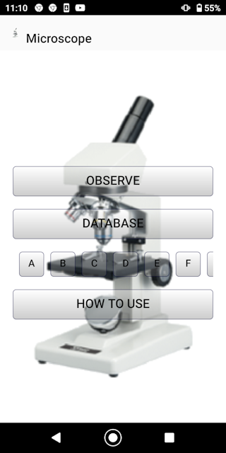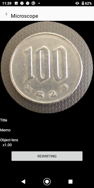 ■Introduction This app is a microscope equipped with a simple database. Please enjoy by attaching a clip-type lens. ①This is the first screen of the application.