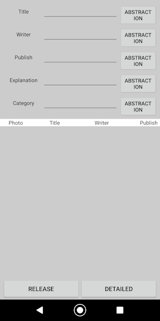 ■Introduction This "My Book Shelf" is a collection management application equipped with a simple database. You can read the barcode and register various data. You can select from the index or any character from the database. You can also register photos. ①This is the first screen of the application.